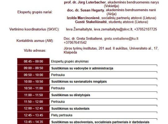 SKVC ekspertų vizitas, kurio metu vyks Gamtinės geografijos ir okeanografijos studijų krypties vertinimas Klaipėdos universitete